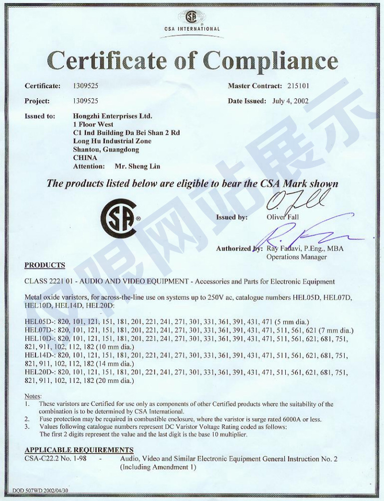 廣東鴻志電子科技有限公司成立于1993年,位于美麗的海濱城市汕頭,現(xiàn)已發(fā)展成為元器件制造集團企業(yè),生產(chǎn)壓敏電阻、NTC熱敏電阻、陶瓷電容和金屬化薄膜電容,通過了ISO9001質(zhì)量體系認(rèn)證和ISO14001環(huán)境體系認(rèn)證,以及IATF16949汽車產(chǎn)品質(zhì)量體系認(rèn)證...